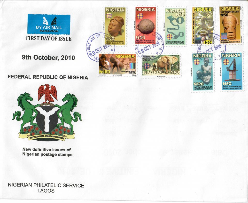 Unlike the previous Definitive set, there are no visible security features to the stamps. Strangely, all stamps have the same value, N250 which in my mind defeats the purpose of issuing definitives, especially as that is the rate for internal mail. With the rising costs in Nigeria, you would need one and half sets to cover the postage of a standard letter to Europe, so not very practical.